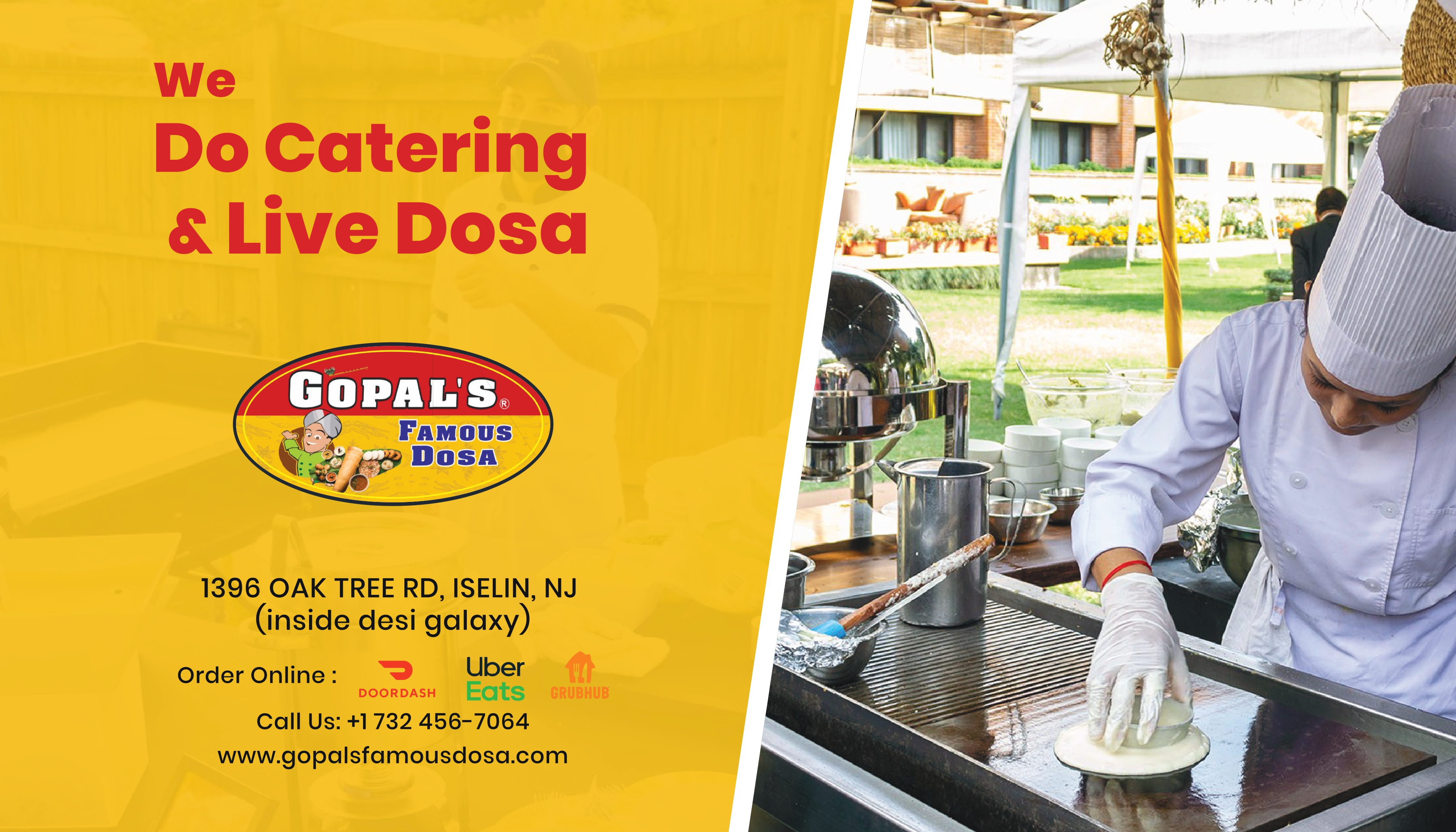 We Focused adding value to our Customers. Gopal’s Famous Dosa Gourmet evolved as traditional, healthy, authentic and tasty Indian vegetarian Food House. We are the best Service Providers for all Events and Functions. We cater authentic tasty Indian vegetarian food for all events like Social Events, Ritual catering and Functions Corporate Events.